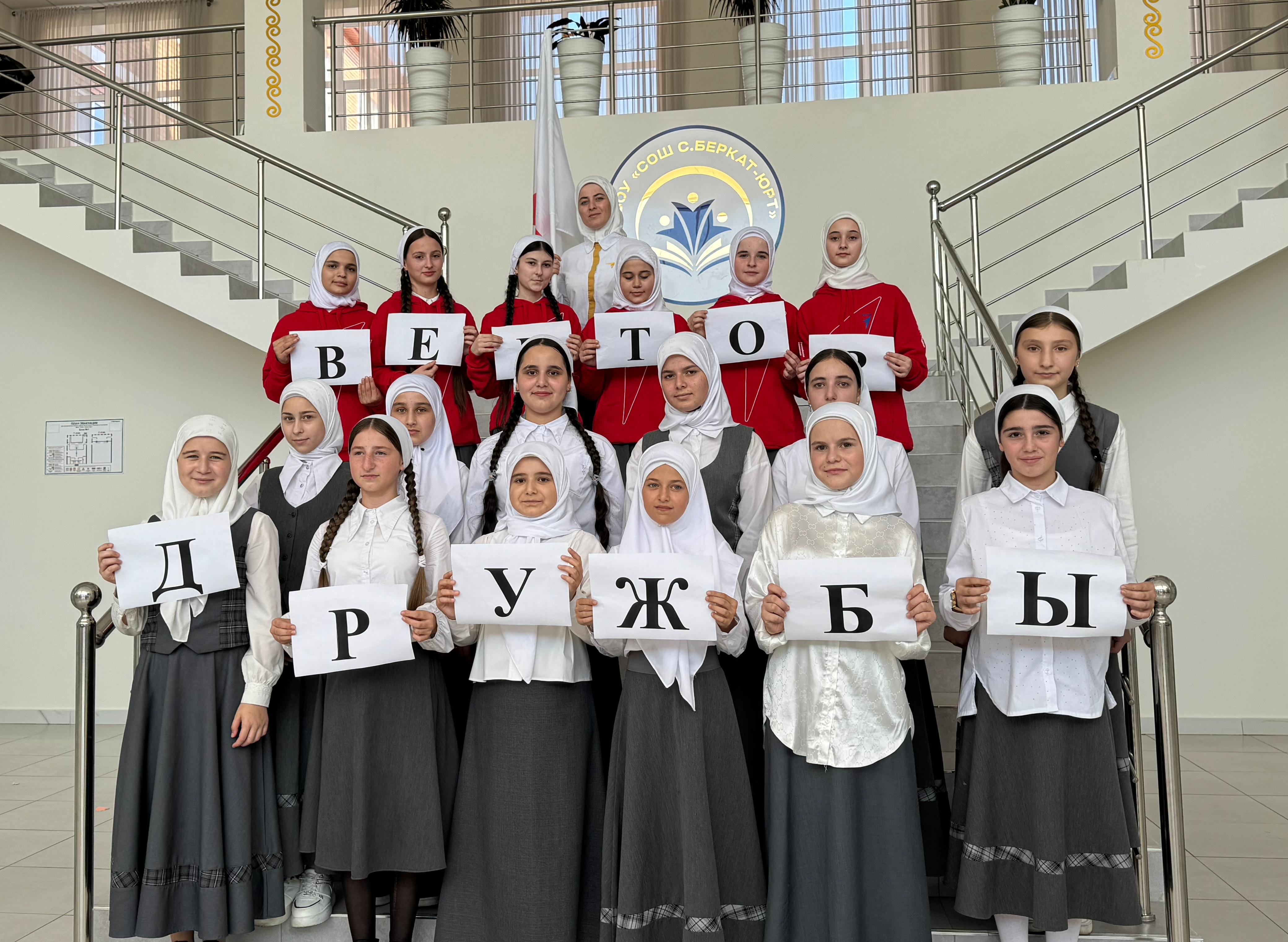 25.09.2025Начиная с 2023 года, 30 сентября в России отмечается День воссоединения Донецкой Народной Республики, Луганской Народной Республики, Запорожской области и Херсонской области с Российской Федерацией, установленный Федеральным законом от 28.09.2023 № 493-ФЗ «О внесении изменений в статью 1.1 ФЗ «О днях воинской славы и памятных датах России».Эта памятная дата вошла в новейшую историю как день принятияв Российскую Федерацию исторических регионов на правах субъектов России. Данное событие основано на исторической общности народов, проживающихна территориях исторических регионов Российской Федерации, является результатом волеизъявления миллионов людей, реализации ими неотъемлемого права свободно и без вмешательства извне определять свой политический статус, осуществлять свое экономическое, социальное и культурное развитие. В МБОУ «СОШ с.Беркат-Юрт» советник директора по воспитанию Эльмурзаева М.И провела акцию «Вектор Дружбы» с обучающимся 5-7 классов #НавигаторыДетства #Росдетцентр #ДеньВоссоединенияНД