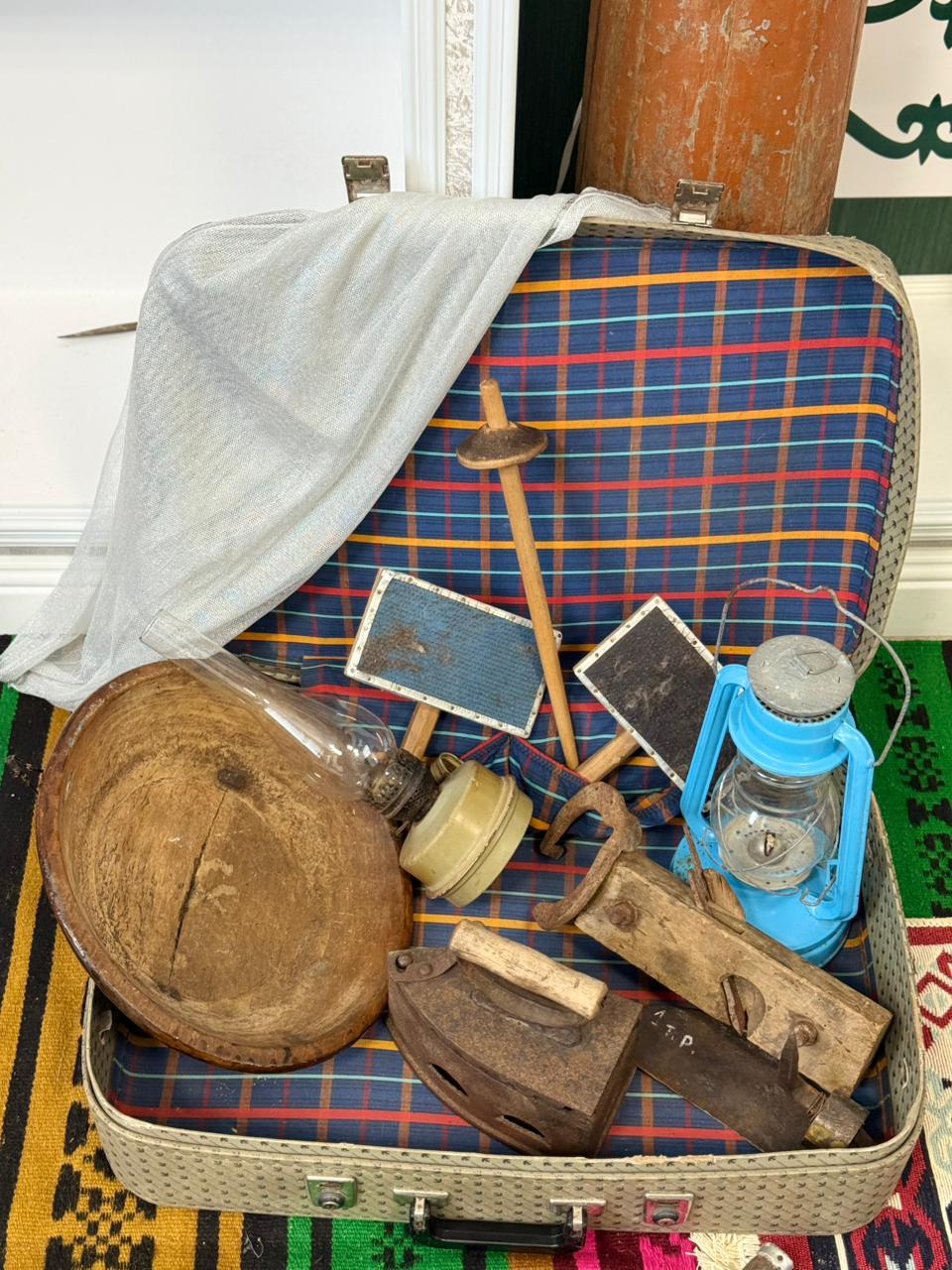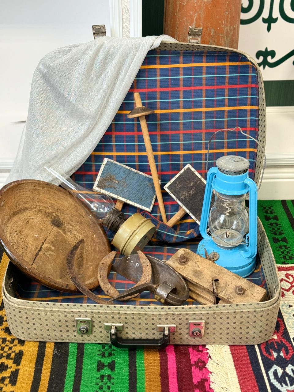 Музей в чемодане «Времён связующая нить» - передвижной проект «Сохрани свою историю» - предлагает уникальную возможность заглянуть в повседневную жизнь прошлого. В одном компактном чемодане собраны подлинные свидетельства ушедшей эпохи: — от предметов народного быта до орудий труда.