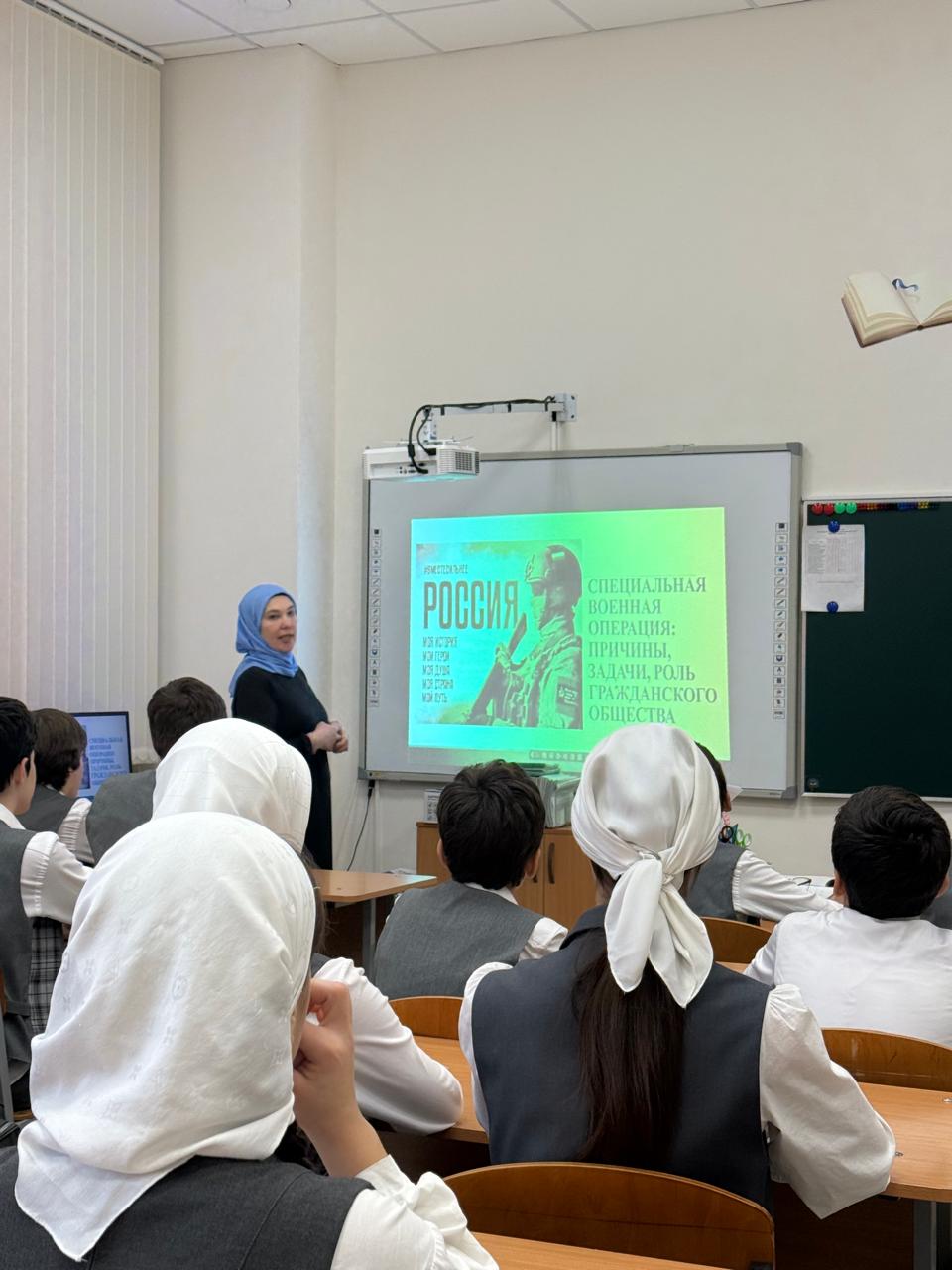 19.11.202519 ноября 2025 года в МБОУ «СОШ с.Беркат-Юрт» с целью воспитания таких качеств, как порядочность, честь, верность долгу, воспитание сознательной любви к Родине, уважение к историческому прошлому своей истории. Проведен урок мужества, посвященный участникам специальной военной операции, проявившим отвагу, мужество и героизм с обучающимися 7а класса.