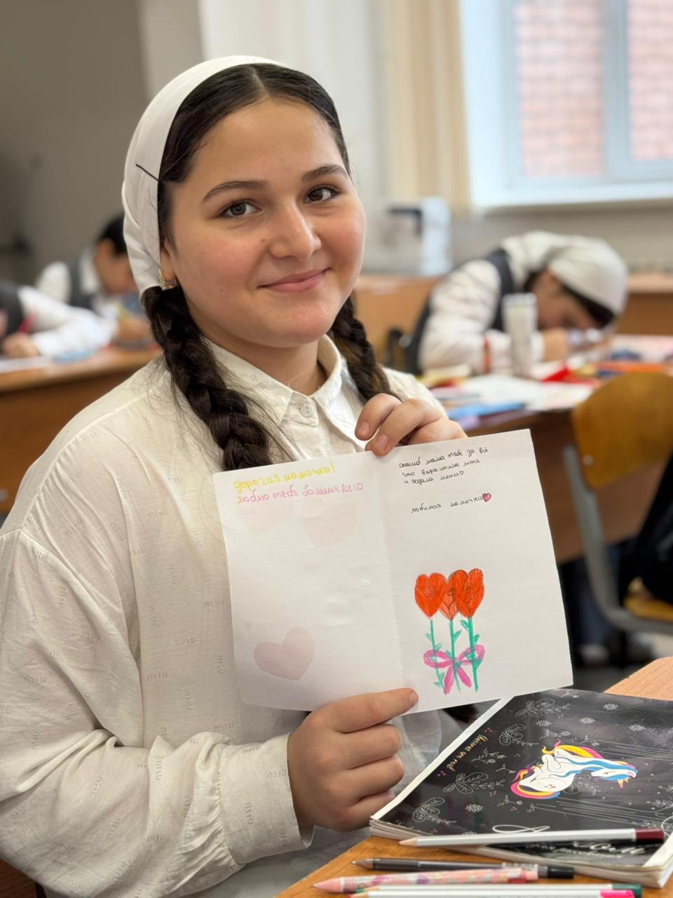 2. Открытки- обучающиеся вместе с классными руководителями сделали вручную открытки, которые потом были подарены матерям в этот праздничный день. Это привнесло больше тепла и индивидуальности в поздравления.