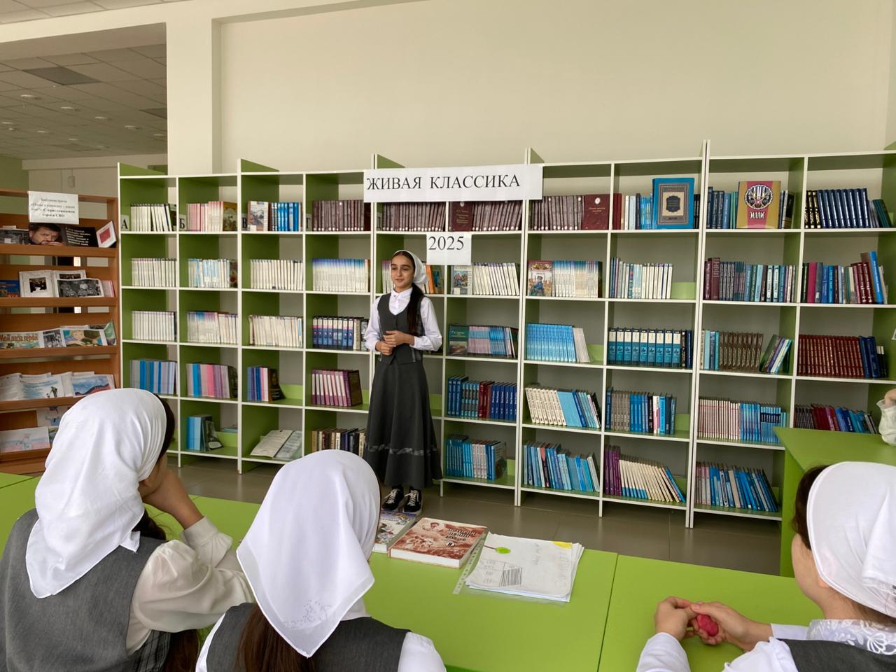 02.12.2025С 24 по 28 ноября 2025 года в МБОУ СОШ с Беркат-Юрт прошла Всероссийская неделя «Живой классики», главная цель которой – познакомить будущих участников конкурса с лучшими произведениями русской и зарубежной классической литературы, а также новинками современных авторов.