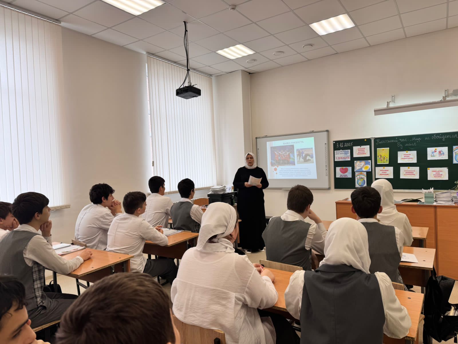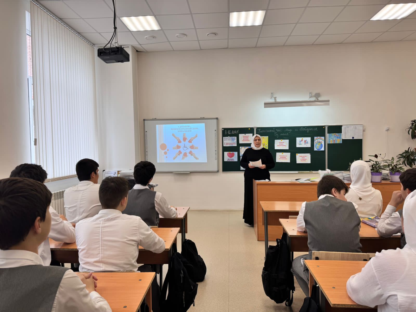 03.12.2025г в 9 «б» классе прошел классный час "Мир не обойдется без меня", приуроченный ко Дню инвалидов. "Я думаю, что самое главное – это видеть в людях не их ограничения, а их возможности", – поделился Дазаев Башлам ученик 9 б класса. Ребята узнали много нового о жизни людей с инвалидностью и о том, как мы можем сделать мир лучше для всех."