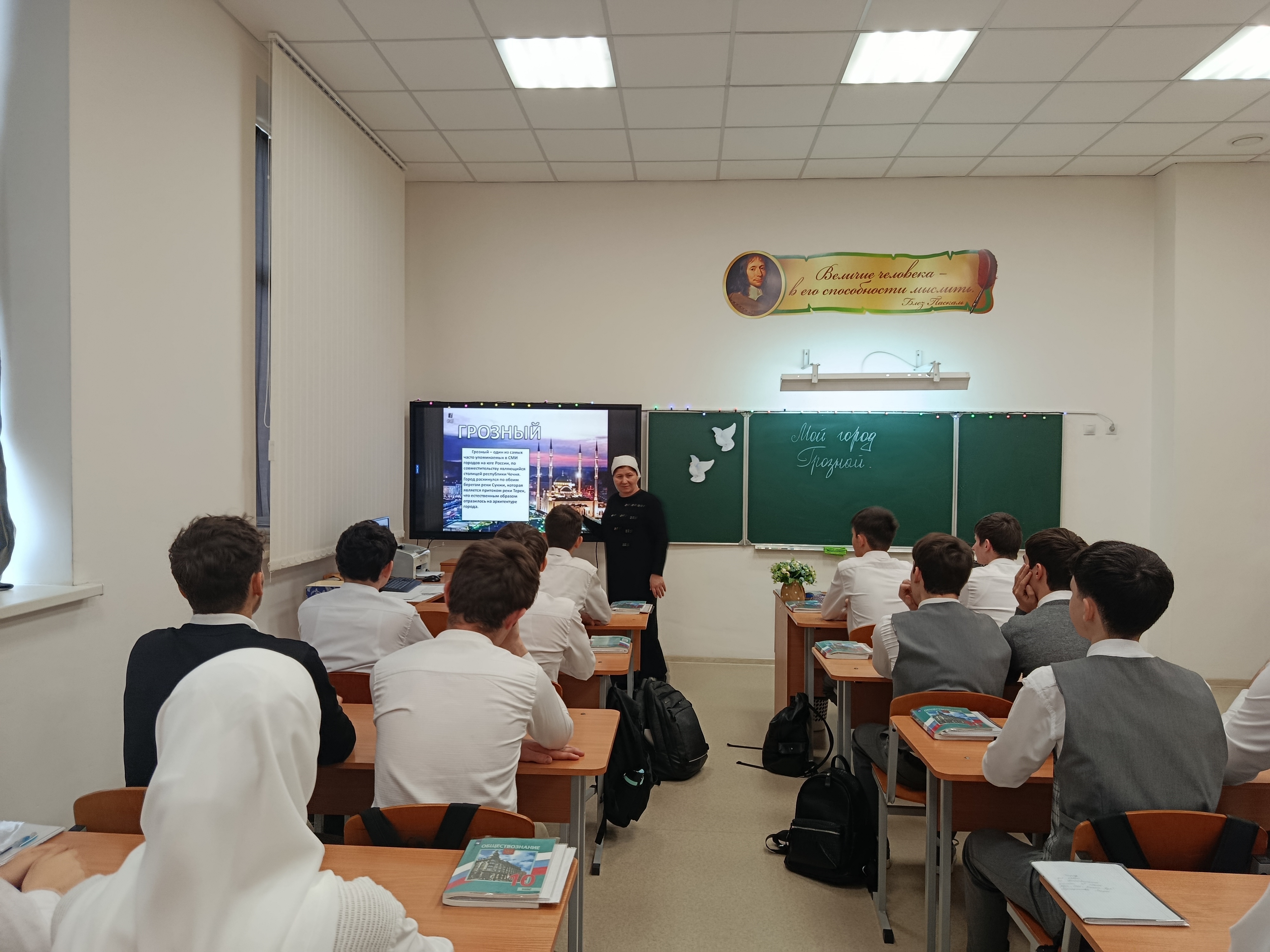 15 декабря в МБОУ «СОШ с. Беркат-Юрт» был проведен классный час на тему «Мой город Грозный». Цель классного часа заключалась в закреплении знаний учащихся о любимом городе Грозный, формировании патриотического чувства и воспитании гордости за свой город и свою страну.
