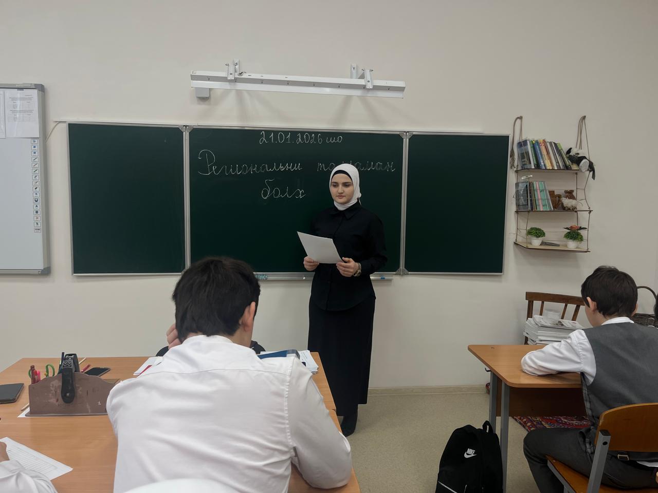 21.01.2026 года в МБОУ СОШ с. Беркат-Юрт обучающиеся 8 классов пишут региональный диктант по чеченскому языку. Цель мероприятия заключается в выявлении уровня подготовки обучающихся 8-ых классов по предмету "Родной (чеченский) язык в соответствии с ФГОС ООО и ФОП ООО.