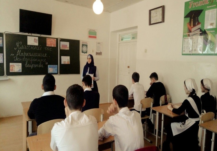 13.03.2018С целью профилактики наркомании и табакокурения, улучшения информированности подростков о факторах риска, создаваемых наркоманией и табакокурением, для здоровья и личности в целом, содействия в становлении здорового образа жизни, формирования позитивного отношения подростков к себе, ответственности за свое поведение, негативного отношения к наркотикам и их употреблению в МБОУ «СОШ с. Беркат-Юрт Грозненского муниципального района» в марте проведена следующая работа